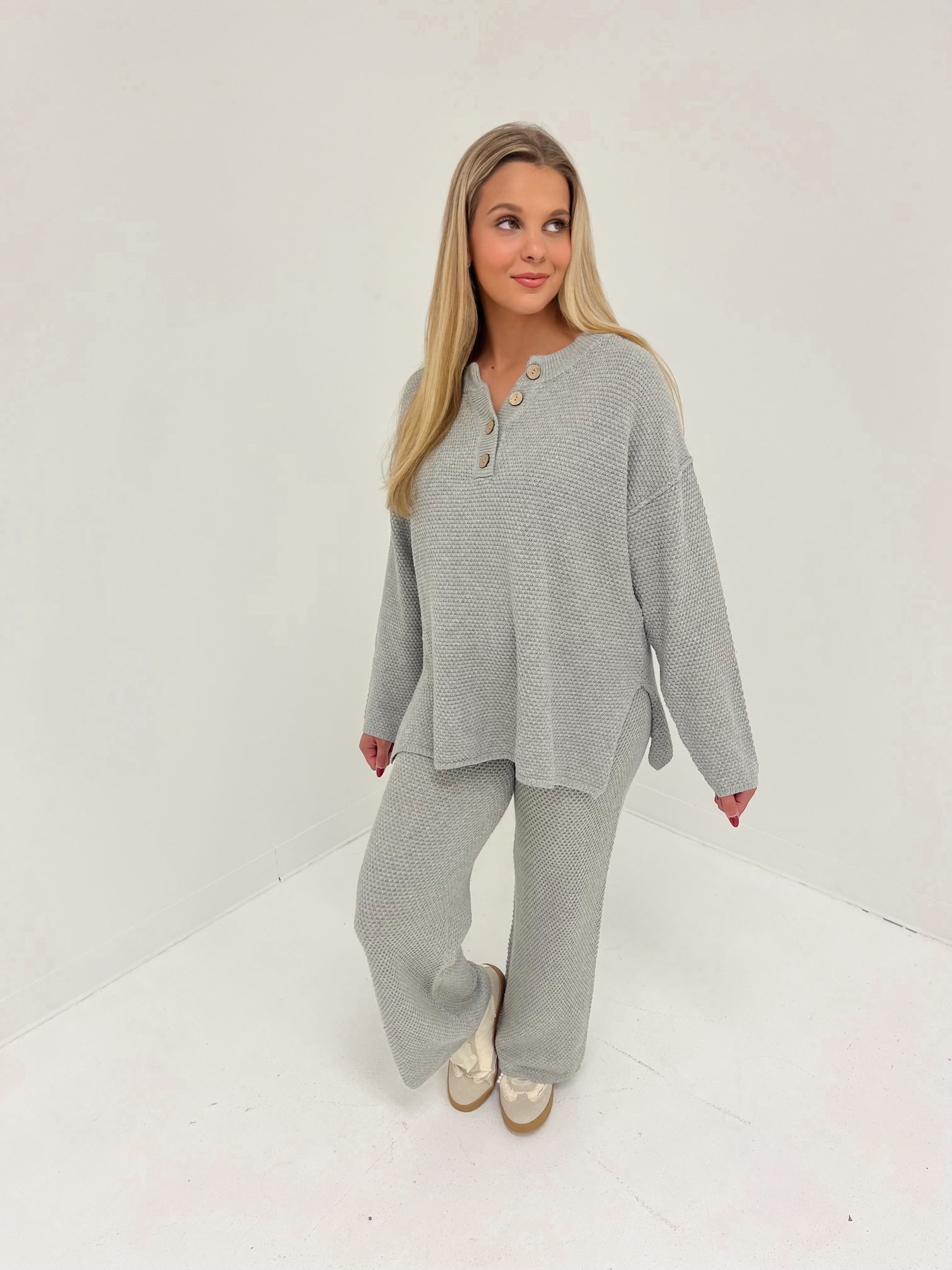 Waffle knit textured pull on wide leg pants in color heather grey (matching top sold separately)