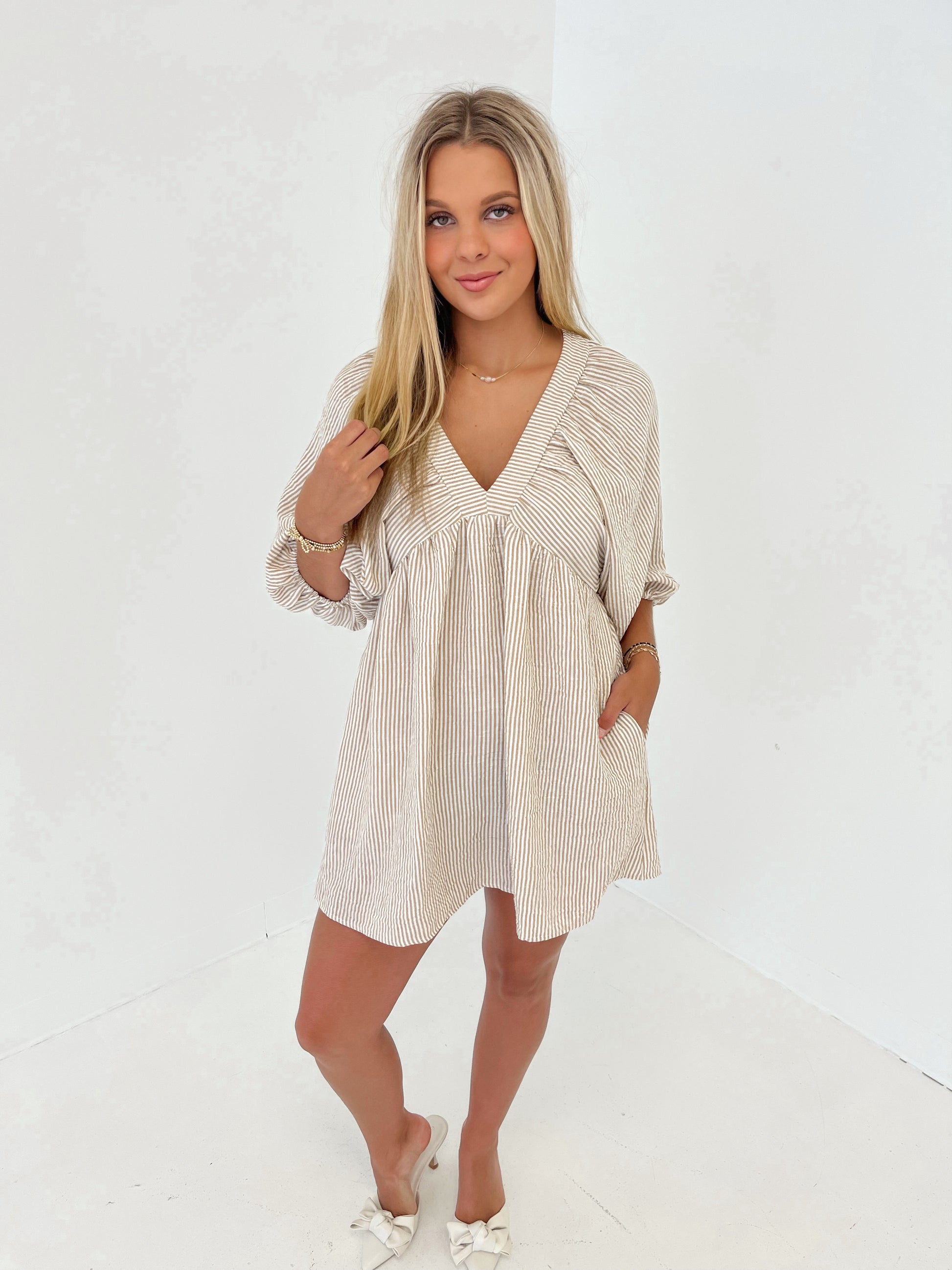 Striped Statement Mini Dress | Taupe