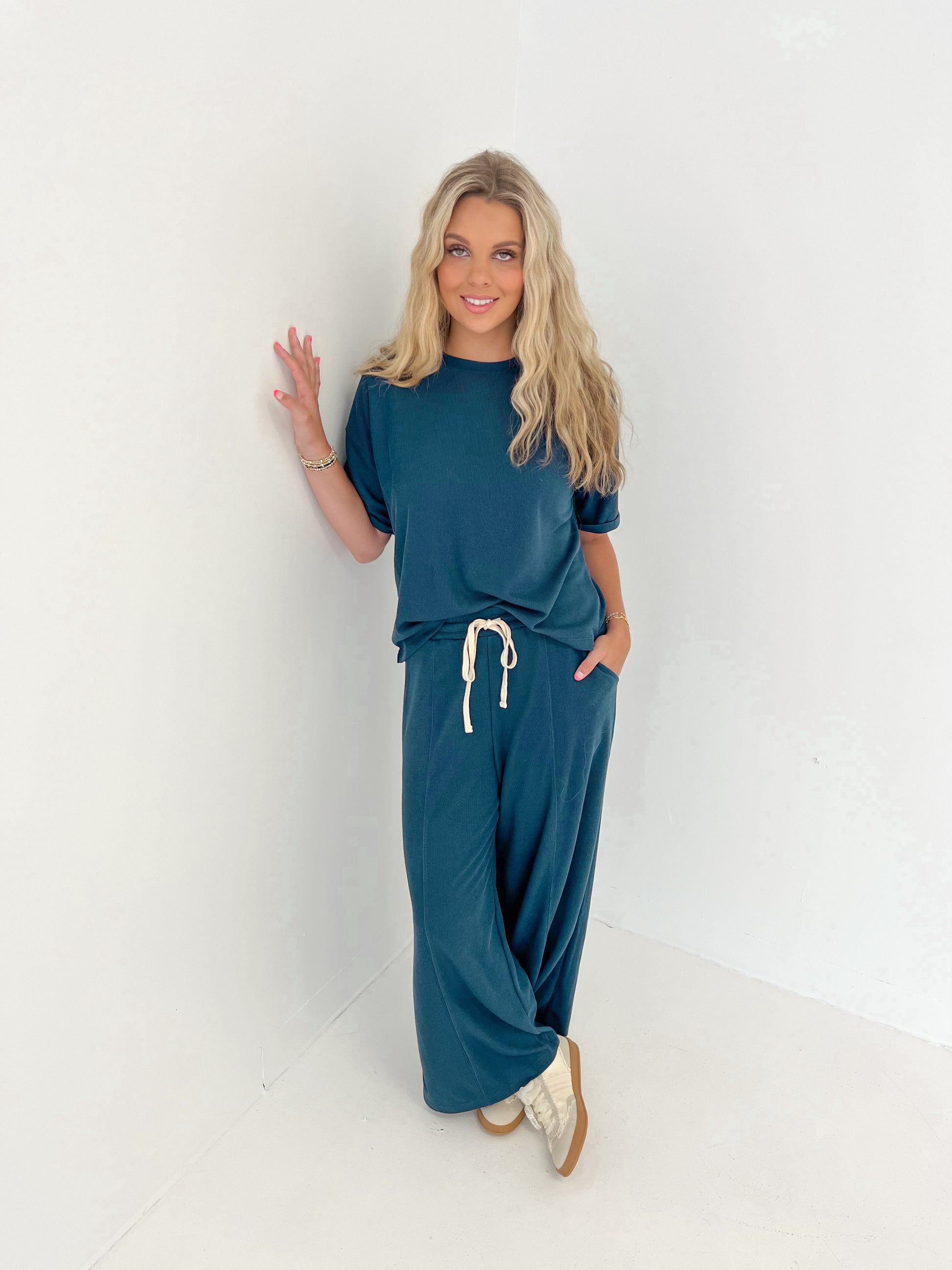 Waffle knit top with folded cuffs in color navy (matching bottoms sold separately)