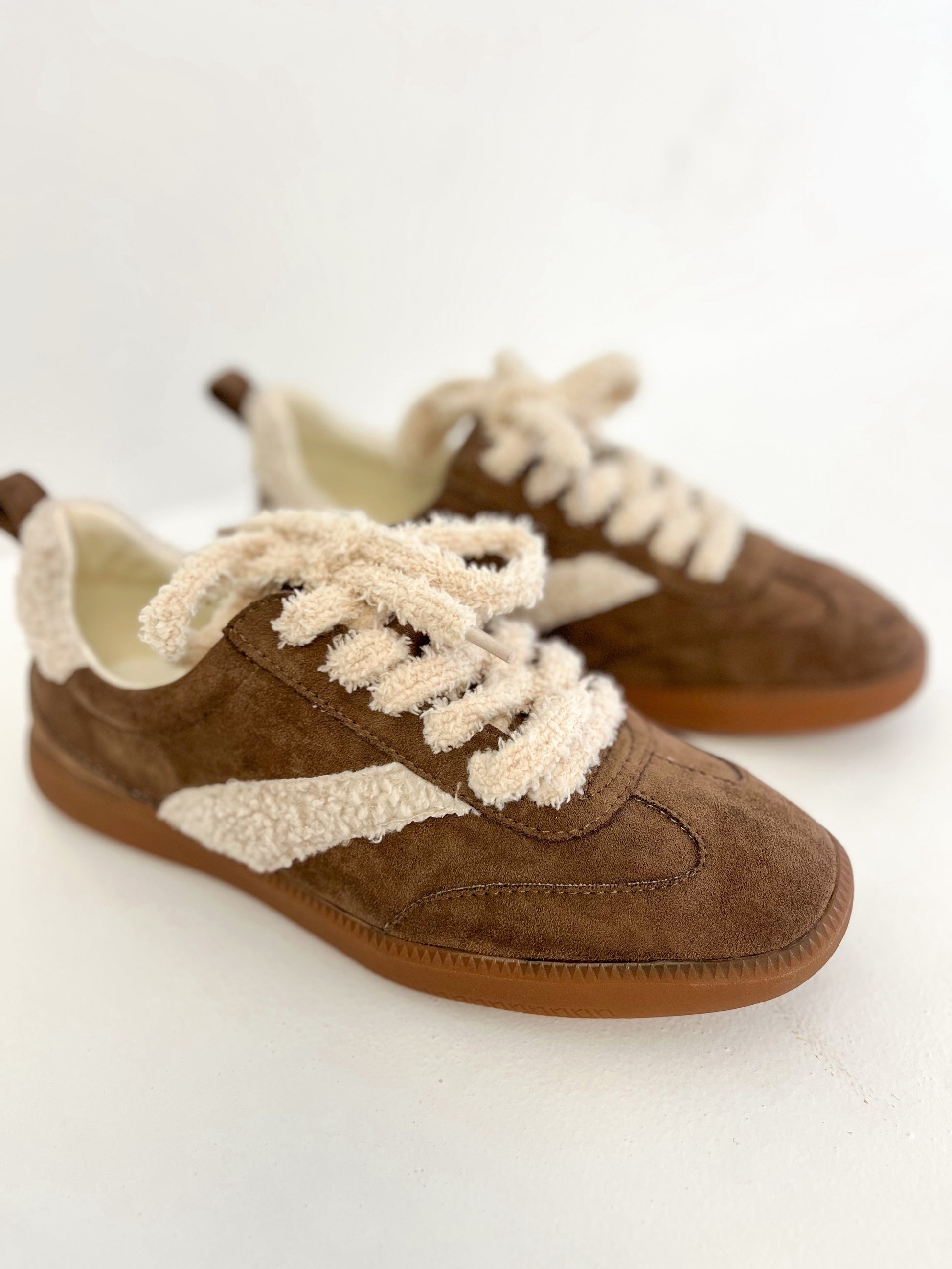 Brown sneakers with teddy detailing